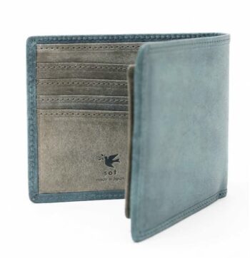 この二つ折り財布の特徴は、ブルー×グレーのバイカラーデザインという、sotのオンラインストアでしか手に入らない限定カラーリング。通常のカラーバリエーションとは一線を画す、洗練されたカラーコンビネーションが上質な大人の雰囲気を醸し出しています。