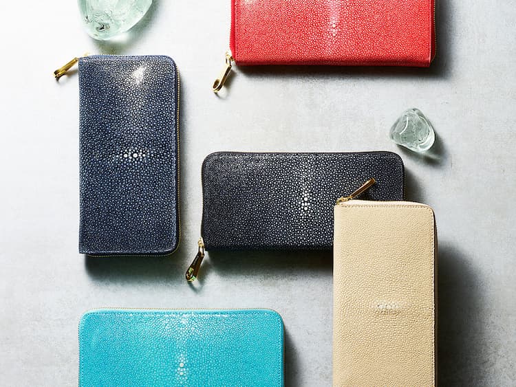 また、エイは古来より縁起の良い生き物とされ、特に背中の中心部にある「スターマーク」は幸運の印として重宝されています。ブラック、グリーン、ネイビーの3色展開で、ビジネスからカジュアルまで幅広いシーンで活躍し、持つ人に上質な満足感をもたらしてくれるでしょう。