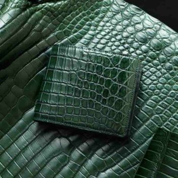「ティラノ」シリーズの一つであるこの財布は、美しい深い緑色が特徴の、同社が誇る最高級クロコダイル財布です。牛革の10倍以上の耐久性を持つクロコダイルに、日本古来より縁起の良い色とされる緑を施し、富や縁起を掴んで離さない最強の顎を持つクロコダイルの特徴を見事に表現。物理的な耐久性と縁起、双方の面で最強と言われる逸品です。