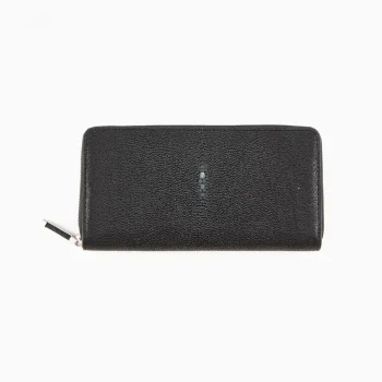 ラウンドジップ長財布は、ガルーシャの美しい輝きを最大限に引き出すデザインです。ノワール(黒)のエイ革は、キャビアのような豪華な光沢を放ち、高級感を漂わせます。内部は3つの紙幣ポケット、ジップ付きの小銭入れ、15のカードポケットを備えており、収納性と使いやすさが両立しています。