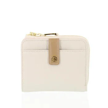 コンパクトなサイズでありながら機能性に優れたデザインです。L字ファスナー式の小銭入れや札入れ、カードポケットなど、必要な機能がすべて揃っています。ナチュラルなシボ感があり、肉厚でふっくらとした手触りのシュリンクレザーを使用しており、ずっと触っていたくなるような風合いが魅力です。また、ゴールドのホックボタンが高級感を演出し、日常使いに適しています。