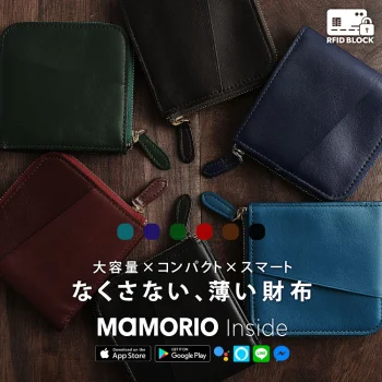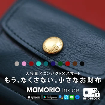 - LIFE POCKETの財布にはMAMORIOという世界最小・最薄クラスの紛失防止タグが内蔵されている