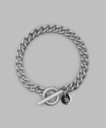 次に、「スキニーチェーンブレスレット/ベネチアン」も人気を集めています。こちらも金属アレルギー対応のサージカルステンレス製です。細身のチェーンが特徴で、留め具のマンテルには岩肌のようなニュアンスが施されています。ライオンハートオリジナルのコインパーツが、ワンポイントのアクセントとして輝きを放っています。