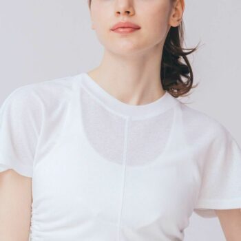 サイドのドロストコードがワンポイントのショートトップス。ややフレアになった袖と絶妙な丈感がスタイルを良く見せます。柔らかく薄手のシアー素材を使用し、レイヤードにぴったり。デザインはDOUBLE STANDARD CLOTHINGが監修しています。