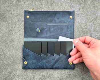 そこで、デザイン性が高く、収納力があり、高品質で手頃な価格のポケットサイズの薄い財布を探し始めました。しかし、理想の財布が見つからず、市販の製品を徹底的に調査し、理想の財布の特徴をまとめていったそうです。