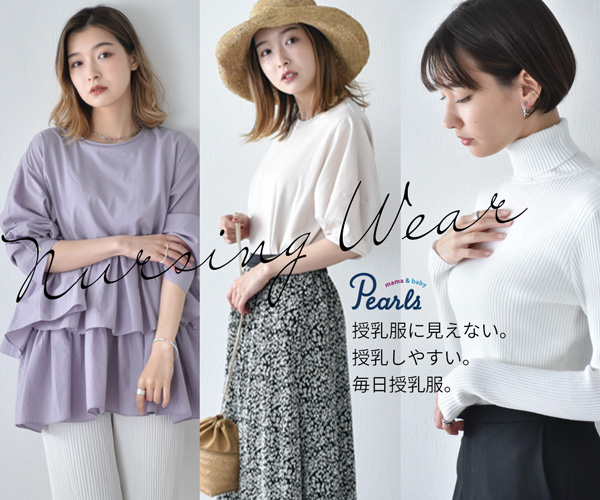 マタニティ服選びに悩んでいる方には、Pearls(パールズ)がおすすめです。同社は、一見するとマタニティウェアや授乳服とわからないようなデザイン性の高い商品を多数取り揃えています。妊娠初期から臨月、そして産後の授乳期間中、さらには授乳期間が終わった後も長く活用できる商品をコンセプトにしているそうです。