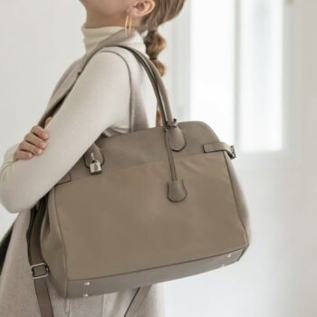 カラーバリエーションも、定番のブラックやベージュから、グレージュやトープといったニュアンスカラーまで幅広く展開。どれも洗練された色使いで、コーディネートの幅を広げてくれます。素材も革調からキャンバス、ナイロン、キルティングまで多彩で、様々なスタイルに対応できる汎用性を備えています。