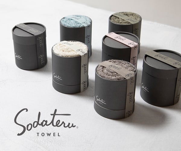 「feel」シリーズは、育てるタオルを代表するスタンダードなラインです。長いパイルによるふわふわな使用感と空気を纏うような軽さが特徴で、洗うたびに育つ薄さややわらかさを楽しめます。アイコンの筒形BOX入りで、そのままギフトとして贈れるのも魅力です。