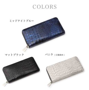 まず、「スモールクロコダイル長財布コルテ」は、人生初のクロコダイル製品として人気があるようです。希少価値の高いスモールクロコダイル(ポロサス)を使用し、ミッドナイトブルー、マットブラック、バニラの3色展開。程よいカジュアル感と高級感を兼ね備えた一品です。