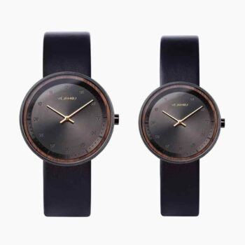 「The Night & Petite The Gold | ペアウォッチ」は、異なる素材を組み合わせた個性的なセットです。男性用の「The Night」(直径40mm、厚さ7.25mm)と、女性用の「Petite | The Gold」(直径34mm、厚さ7.25mm)が含まれています。どちらの時計も、木のリングには天然くるみ材を使用し、文字盤にはくるみ材かダークステインくるみ材を採用しています。シンプルでありながら、他にはないエレガントなデザインが魅力です。