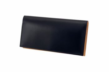 この長財布は、「オールインワンで収めたい」というユーザーの声に応えて開発されたアイテムとのこと。財布の淵のコバ部分には切り目本磨きが施されており、職人の繊細な技術によってシャープな印象に仕上げられています。オーソドックな長財布として、カード段、小銭入れ、札入れを備えつつも、マチを薄く設計することで、スーツの胸ポケットに入れても違和感のない作りになっています。